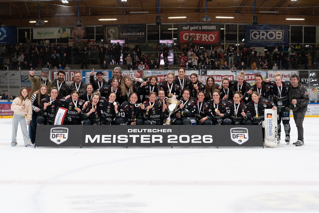 spielfeld150 memmingenMit der siebten Deutschen Meisterschaft – der vierten in Folge – krönten die Frauen des ECDC Memmingen die Spielzeit 2025/26. Nachdem die Memmingerinnen ihre ersten beiden Finalspiele bei den Eisbären Juniors Berlin in der Vorwoche mit 6:1 und 3:0 gewinnen konnten, genügte am Samstagabend ein 4:2-Heimerfolg zur erneuten Titelverteidigung. Knapp 2700 begeisterte Zuschauer in der ALPHA-Cooling-Arena am Memminger Hühnerberg sorgten dabei für eine würdige Kulisse.